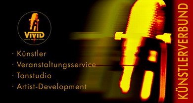 V-M-P (Vivid Music Productions) ist ein Künstler und Musikerverbund aus dem Rhein Main Gebiet. Hier organisieren sich Profimusiker in Eigenregie und haben so eine Organisation ins Leben gerufen, die jeden musikalischen Auftrag für Sie erledigen kann. Wir bieten Ihnen von der Vermittlung professioneller Bandformationen für Events, über Auftragskompositionen, bis hin zur Produktion von Werbejingles in unserem Tonstudio, eine weite Palette von Dienstleistungen.